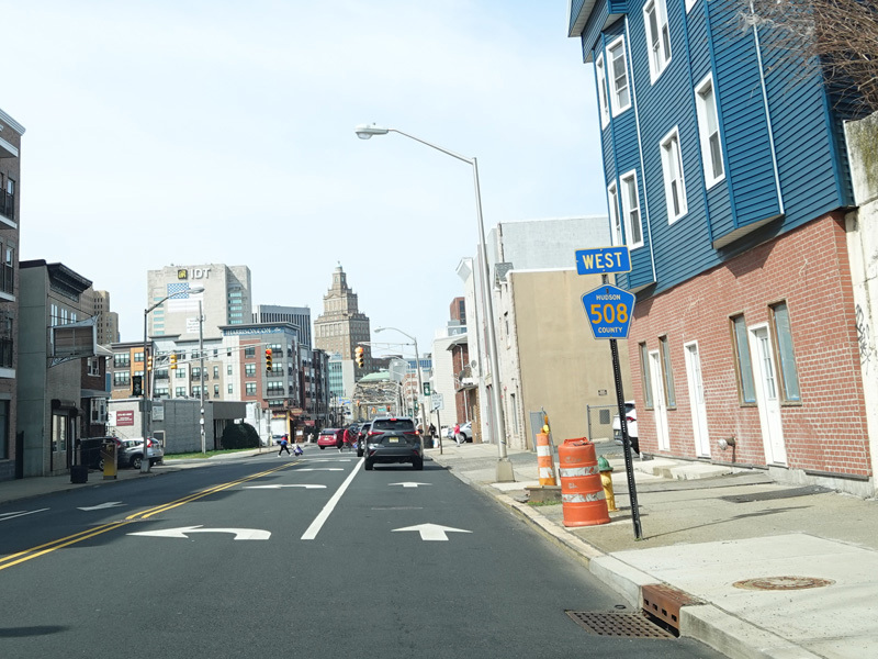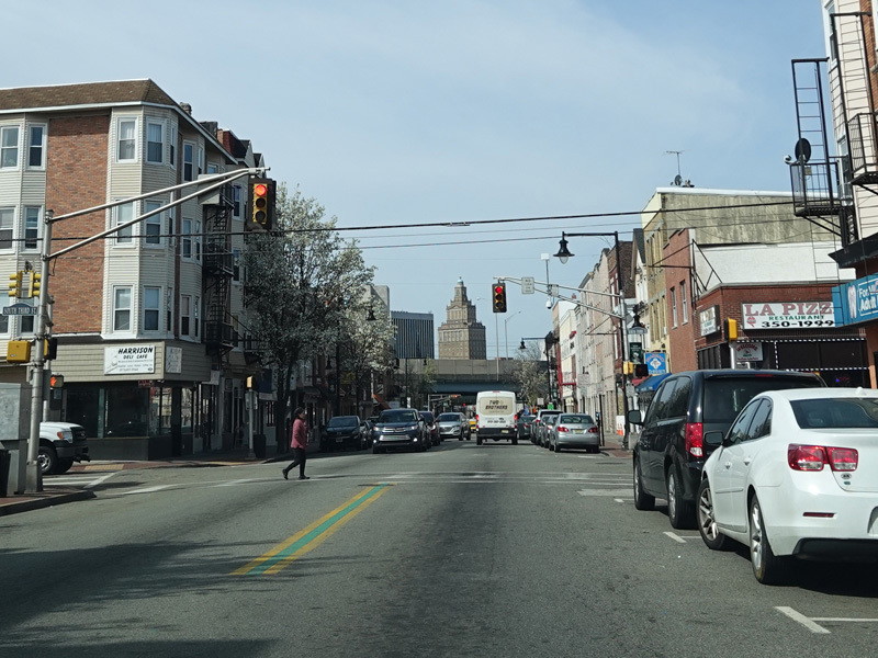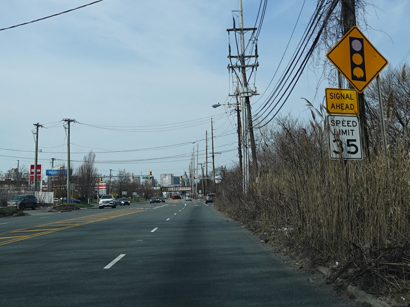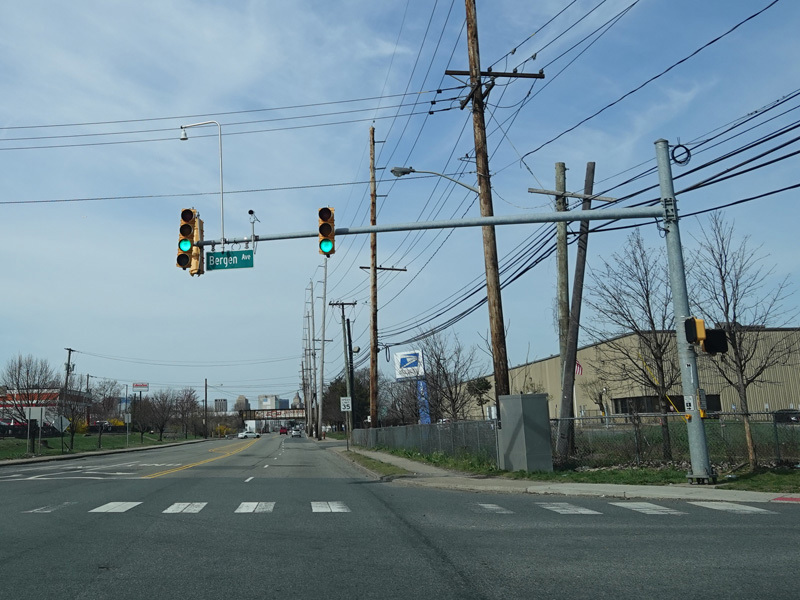 Coming into Harrison, Newark-Jersey City Turnpike changes names to become Harrison Avenue. There are traffic lights at Bergen Avenue and Sanford Avenue.