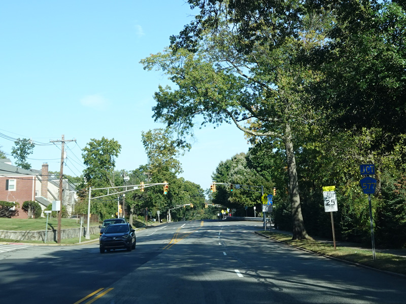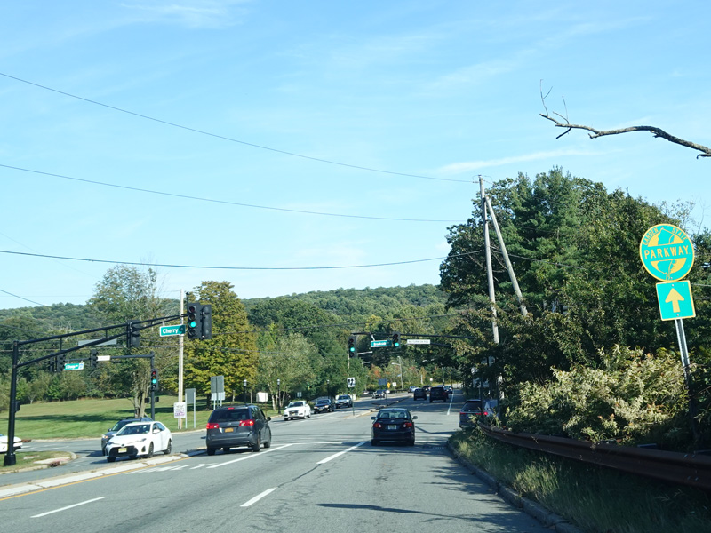 Approaching the South Mountain Reservation, South Orange Avenue becomes a divided highway. There is a traffic light at Cherry Lane and Brookside Drive.