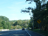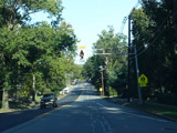 The median ends, and South Orange Avenue narrows down to two lanes as it heads downhill.