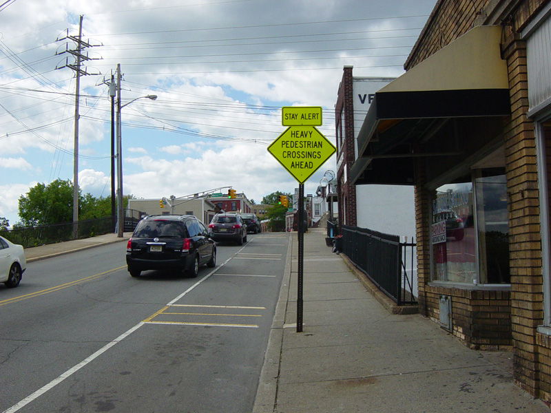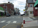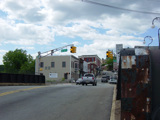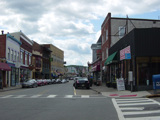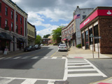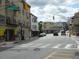 Main Street runs west through Boonton as a two-lane undivided road. This section is uphill on a fairly steep incline.