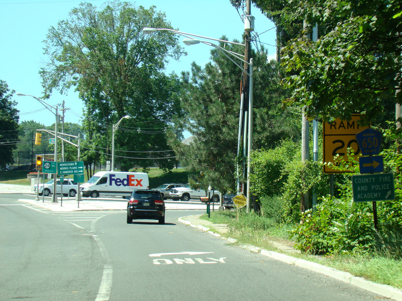 Skipping south to Morristown, CR 650 begins on the right at a traffic light. There is an entrance to NJ 24 east to the left.