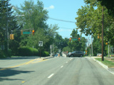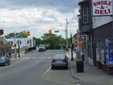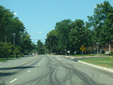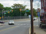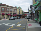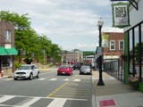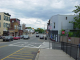 Main Street runs east through Boonton as a two-lane undivided road. This section is downhill on a fairly steep incline.