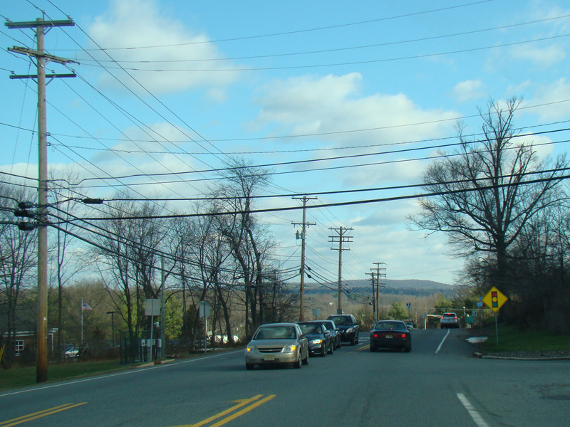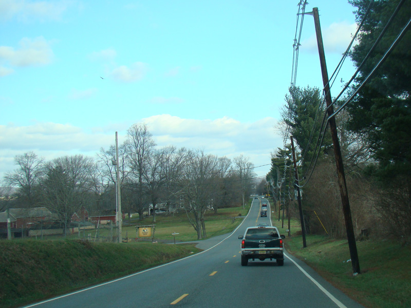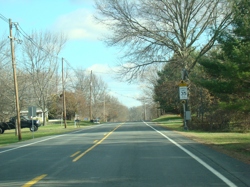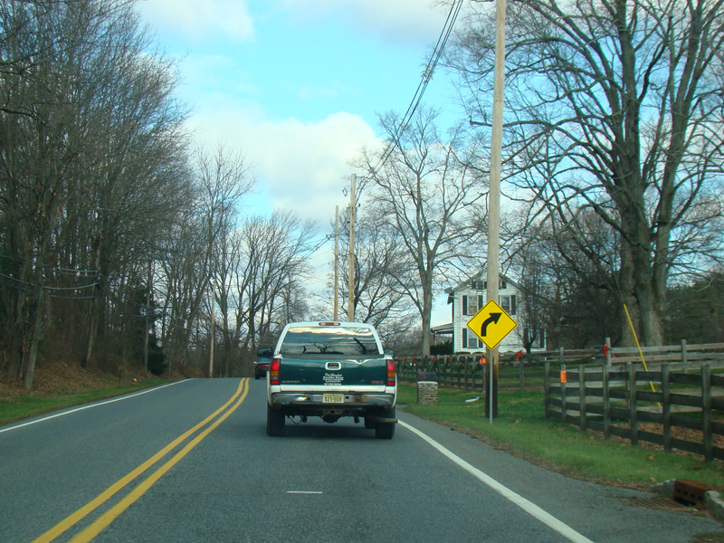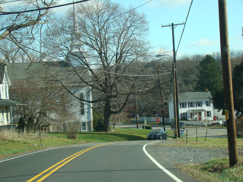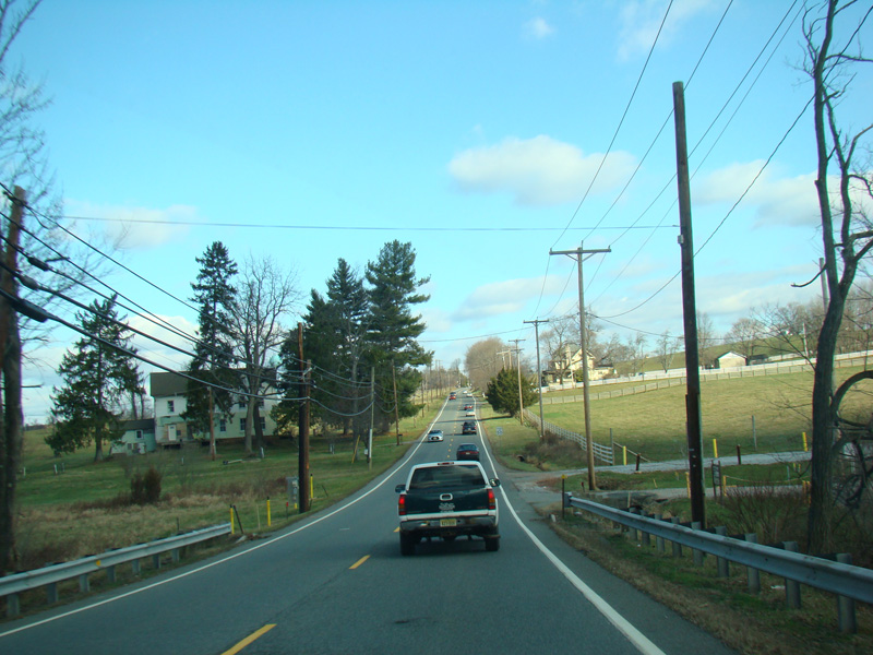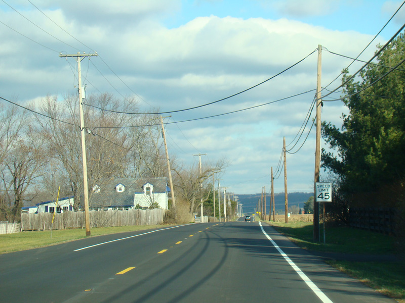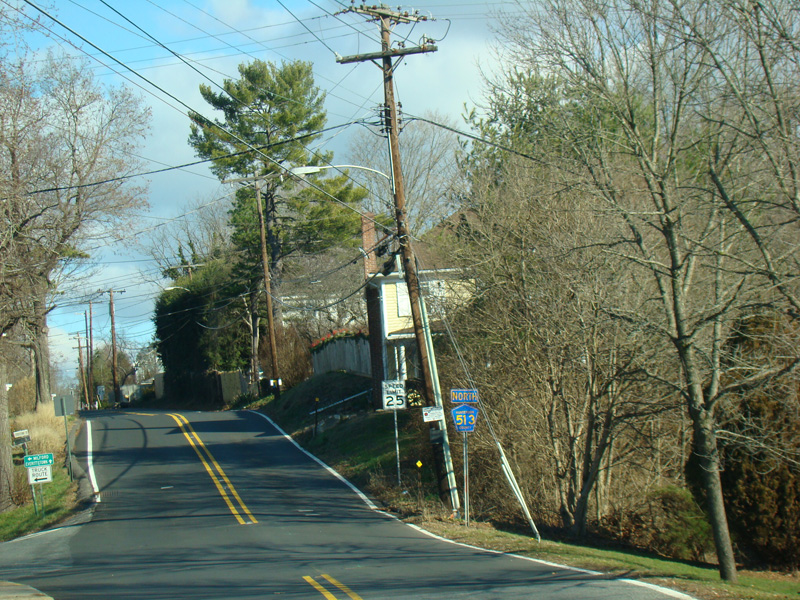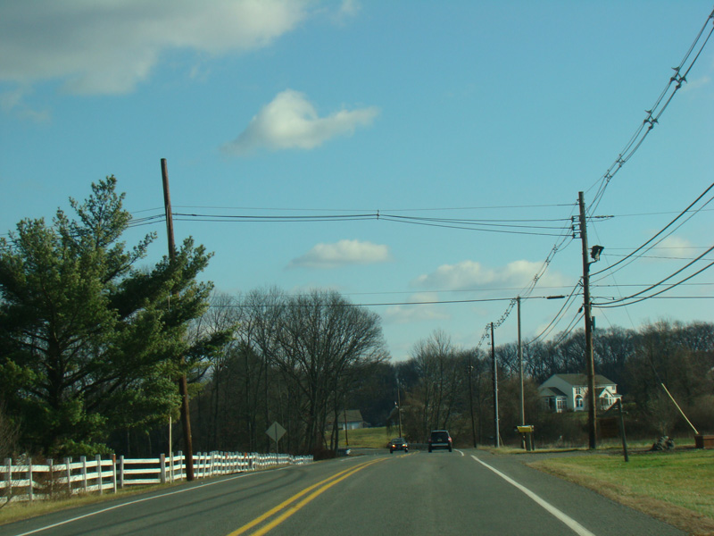 Where NJ 12 turns from Race Street onto Kingwood Avenue in Frenchtown, Race Street continues as CR 513. After a couple of blocks, it changes names to become Everittstown Road. It runs northeast as a two-lane undivided road through rural surroundings.
