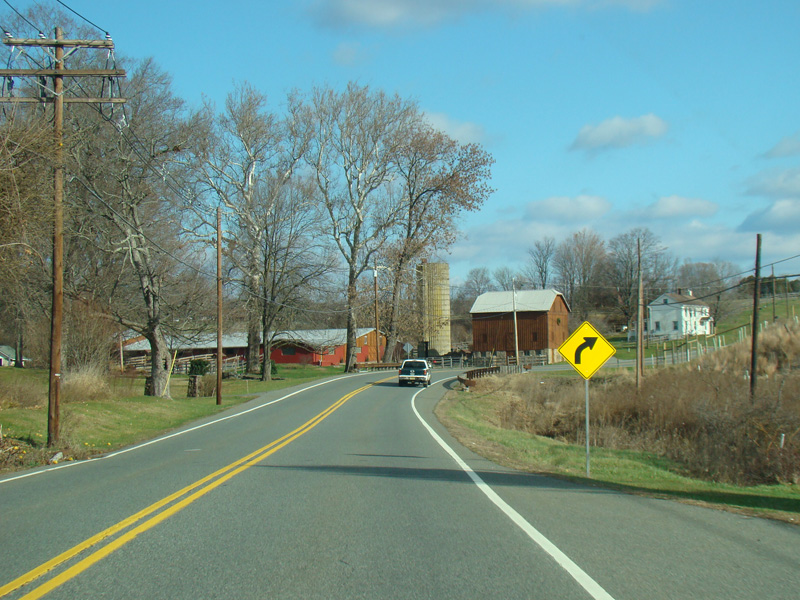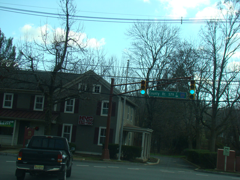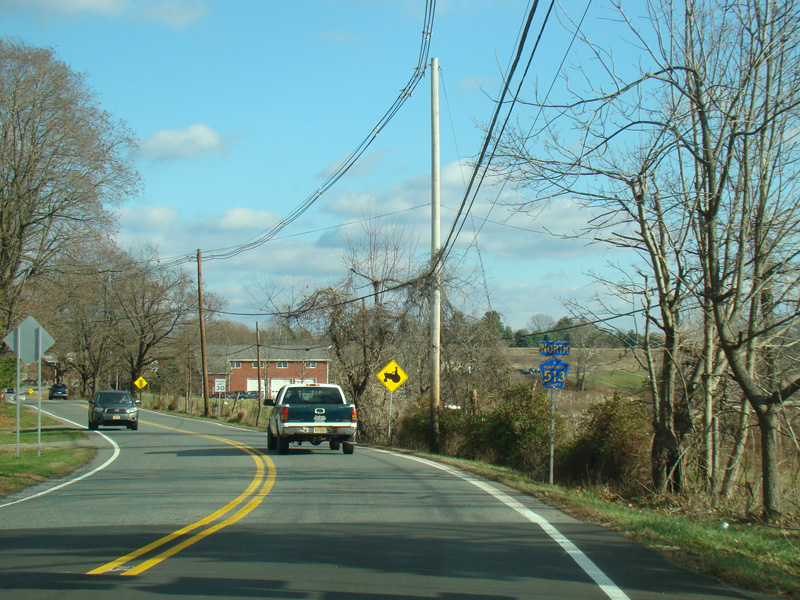 The two routes are multiplexed for one block, and then CR 579 splits off to the left onto Bloomsbury Road. Continue straight ahead on Pittstown Road to stay on CR 513.