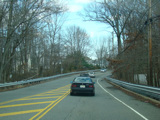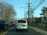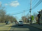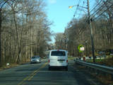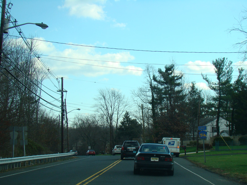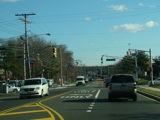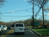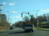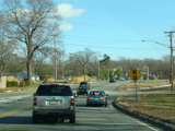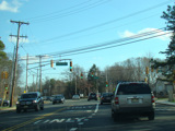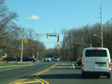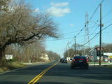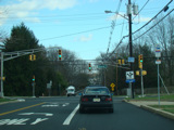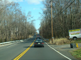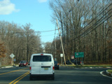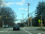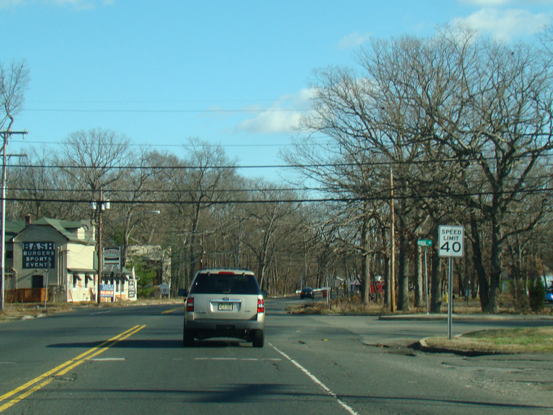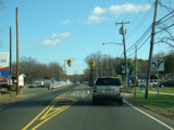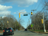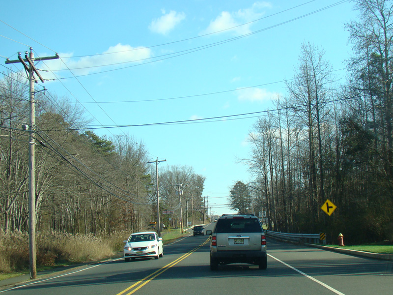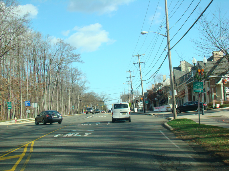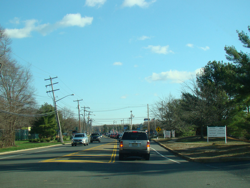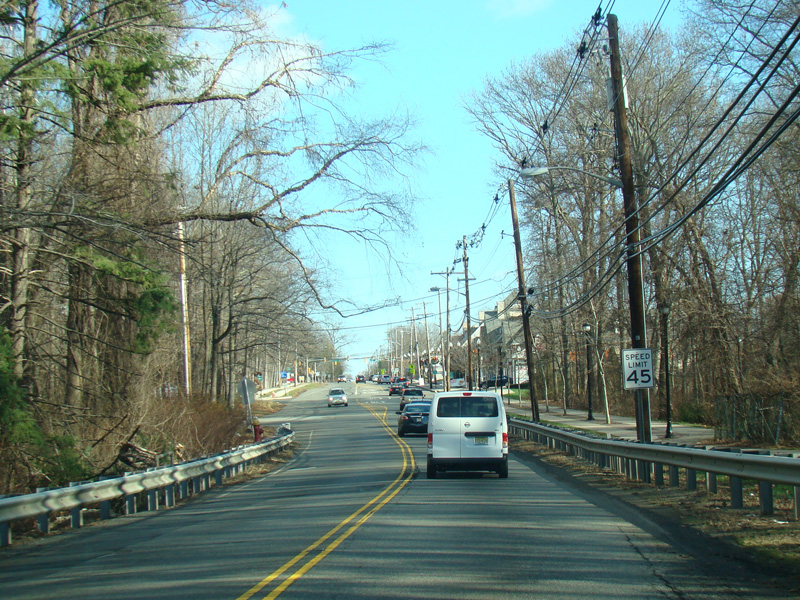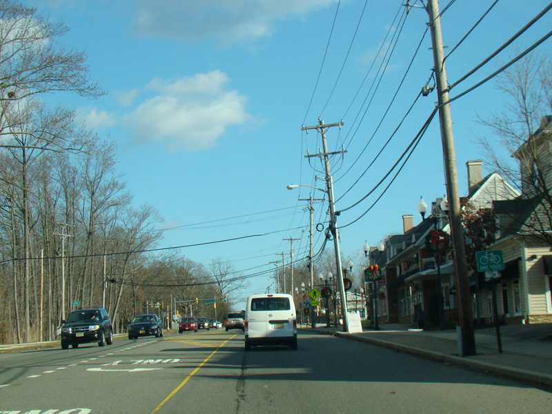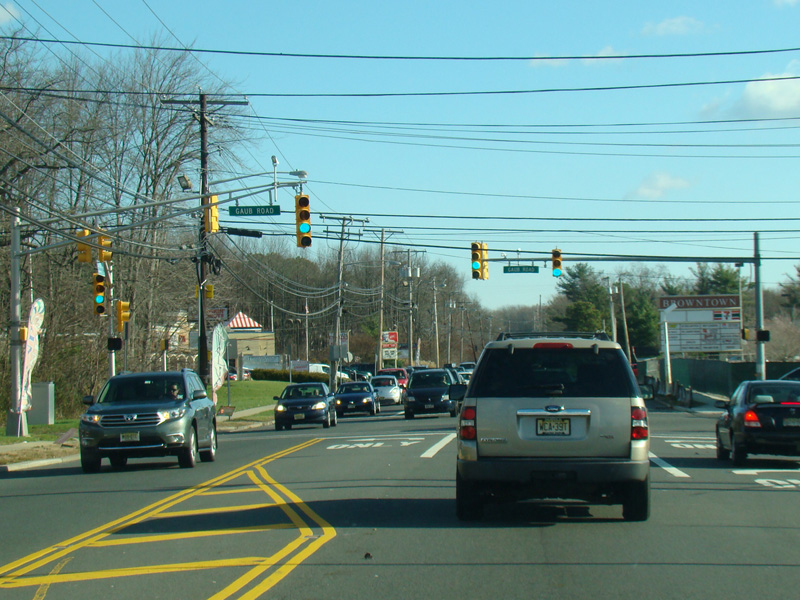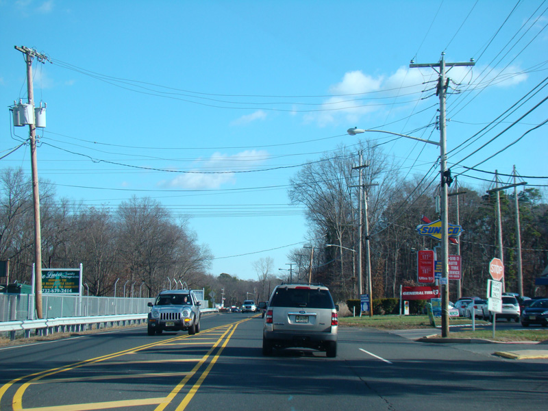 Old Bridge-Matawan Road runs east as a two-lane undivided road. There are traffic lights at Mannino Park Drive, Owens Road, Jake Brown Road, Gaub Road, Red Oak Lane, and Bushnell Road.