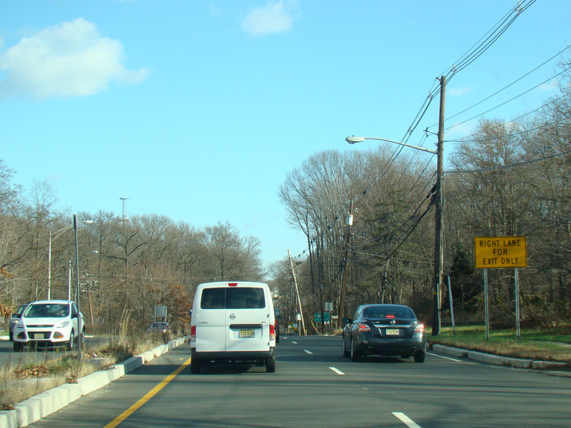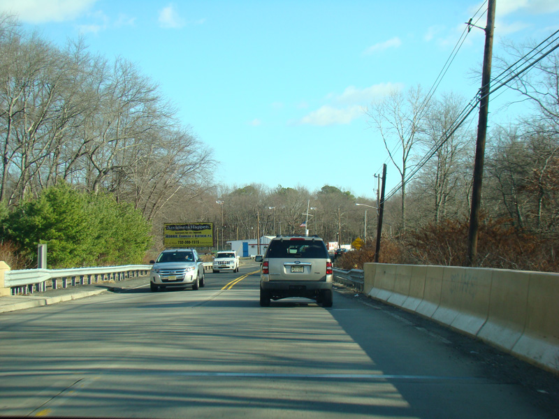 There is a grade-separated interchange with US 9. Old Bridge-Matawan Road widens to become a four-lane divided road as it passes through the interchange and then narrows down again.