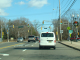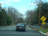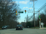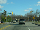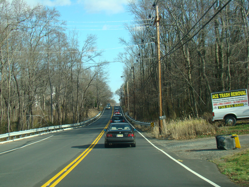Old Bridge-Matawan Road continues east as a two-lane undivided road. There are traffic lights at Cottrell Road (CR 687), Old Bridge East High School, and Morganville Road.