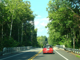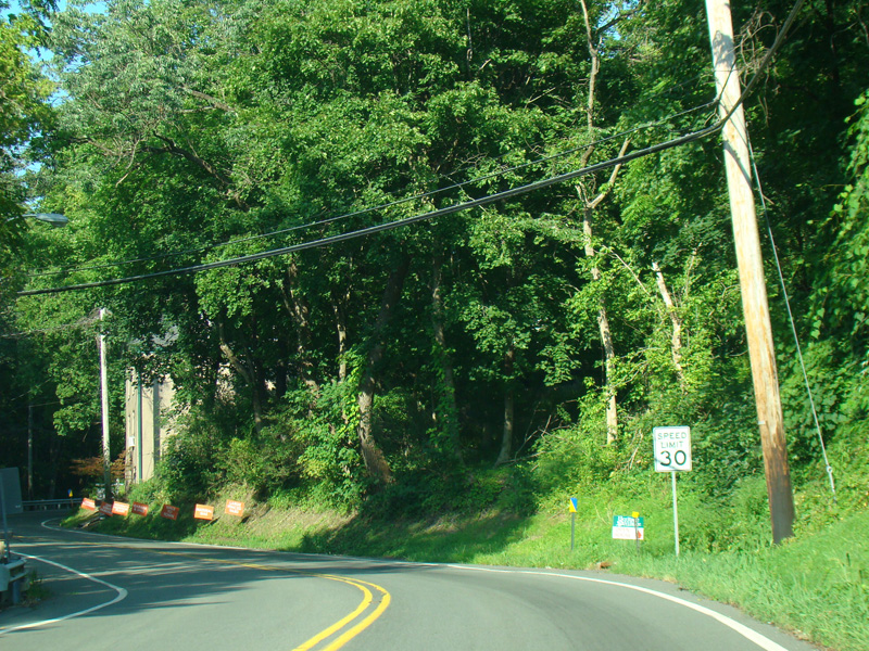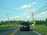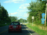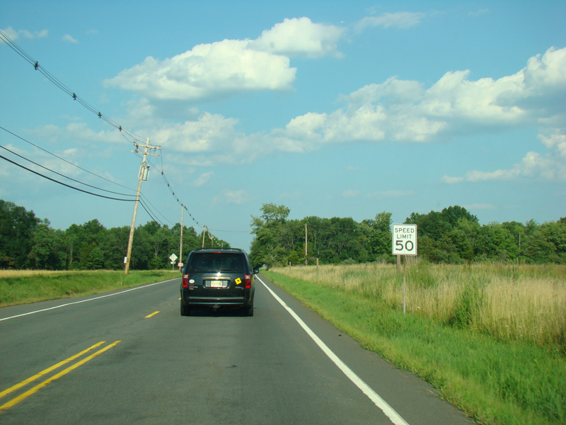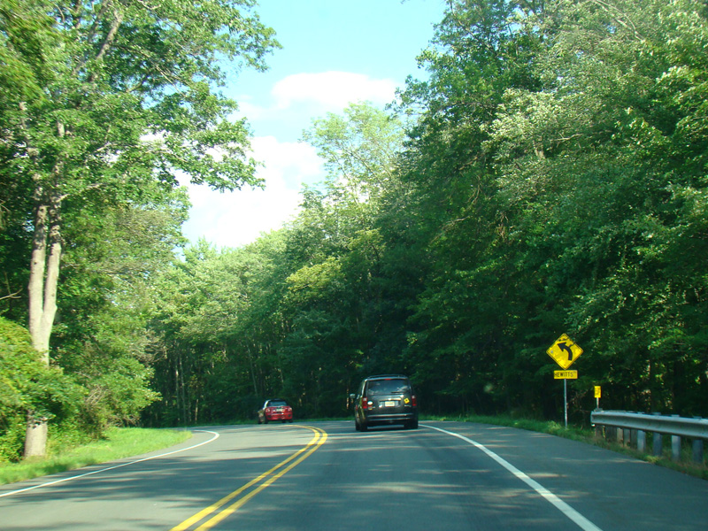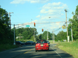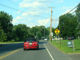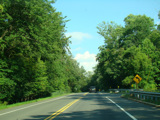 After a short distance, there is a flasher at Woodsville Road (CR 612). Turn left to go north or right to go south.