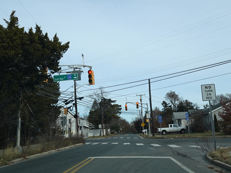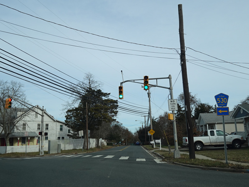 There is a traffic light at Herflicker Boulevard (NJ 166). Turn right to go south.