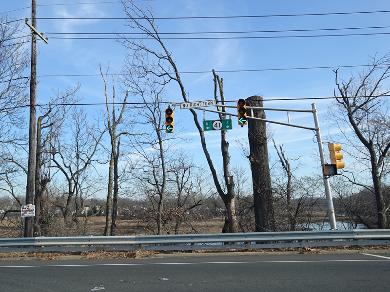 There is a traffic light at NJ 41. Turn left to continue on Clements Bridge Road to go north and stay on CR 544. Turn right onto Hurffville Road to go south toward an interchange with the North-South Freeway (NJ 42).