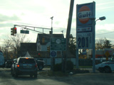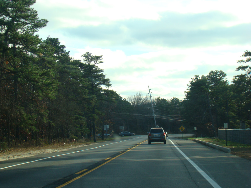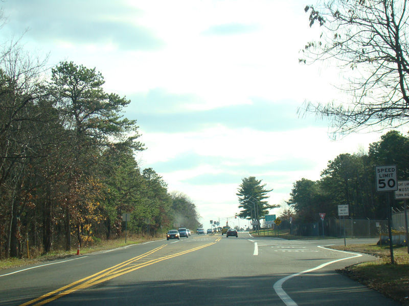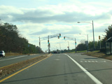 There is a military base along the right here. There is a traffic light at the entrance to the base.