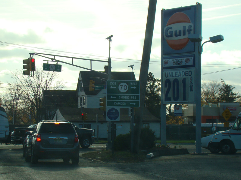 CR 547 changes names to become Center Street and then ends at a traffic light at NJ 70. Center Street continue straight ahead as a local street.