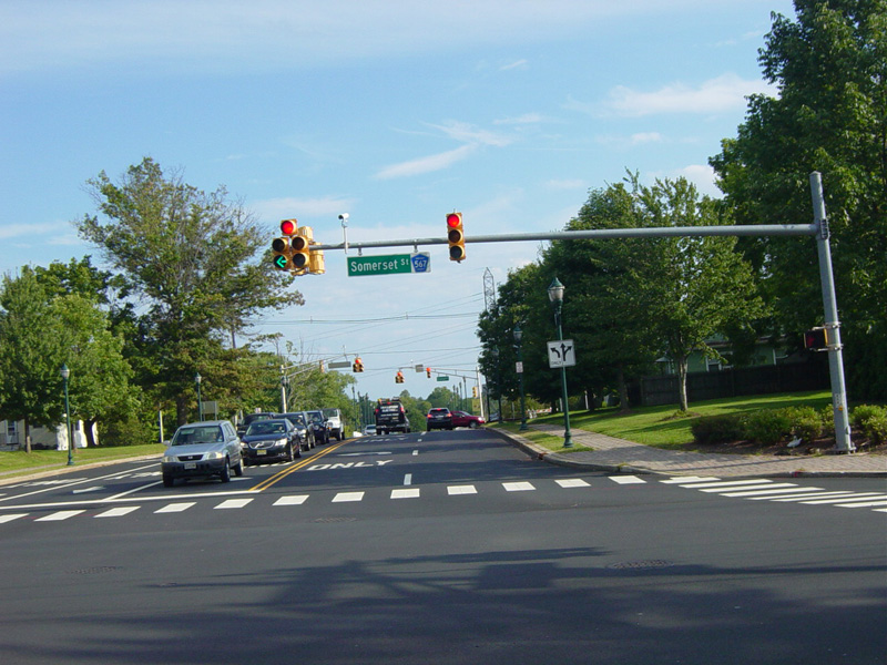 First Avenue ends at a traffic light at Somerset Street. Turn right to stay on CR 567. CR 626 begins on the left. Lyman Street (CR 625) is straight ahead.