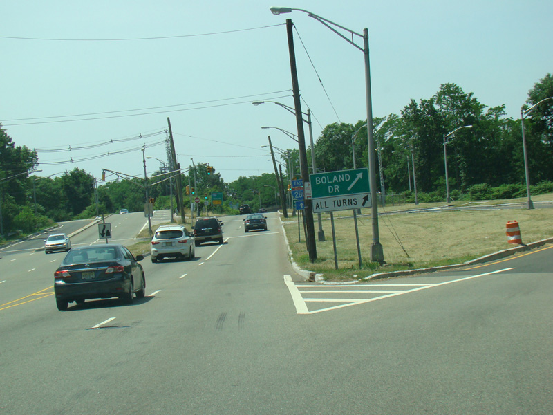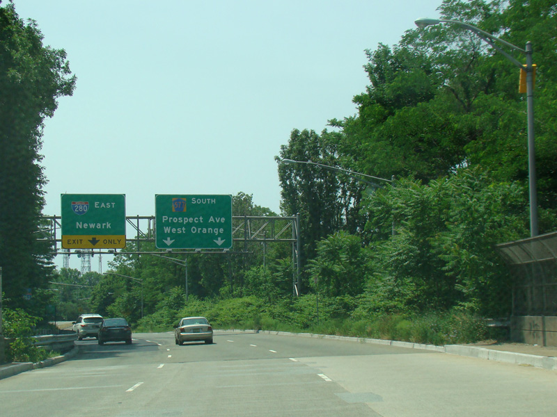 There is an interchange with I-280. The ramp to go west also serves as a turnaround to provide access to Boland Drive from this direction. The signage only makes reference to Boland Drive, making this an easy place to get lost in New Jersey.