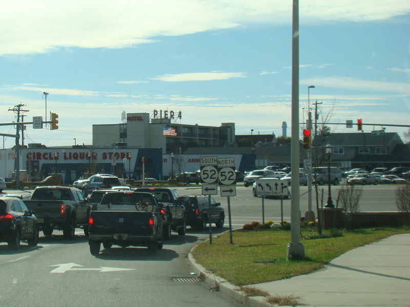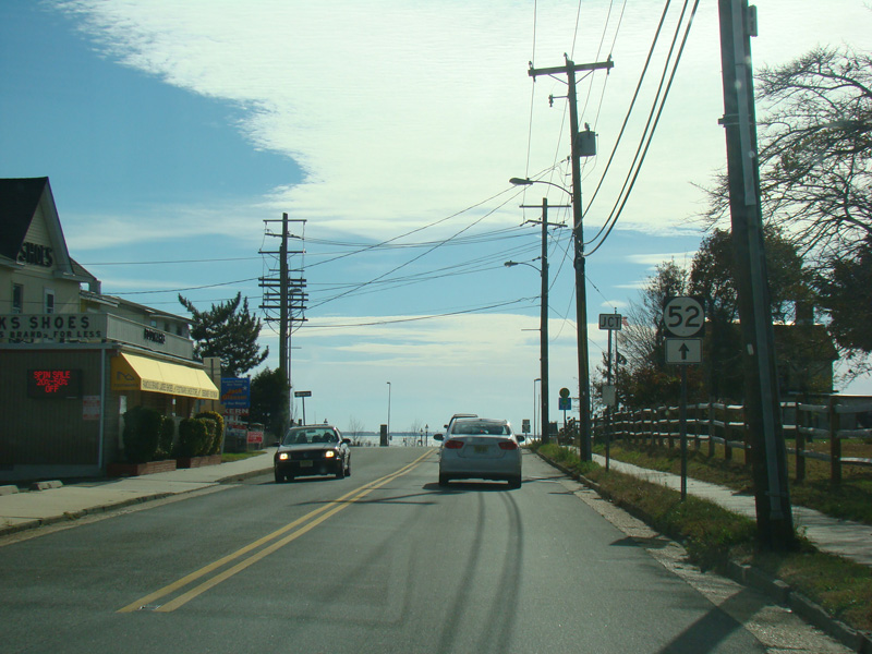 Shore Road ends at a traffic light at MacArthur Boulevard (NJ 52). Turn right to go north or left to go south. Mays Landing Road (CR 559) begins straight ahead.