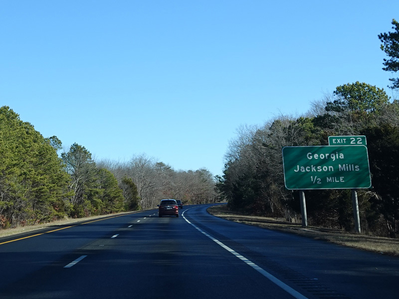 Exit 22 is for Georgia and Jackson Mills. The exit leads to Jackson Mills Road (CR 638), but only the town names are posted.