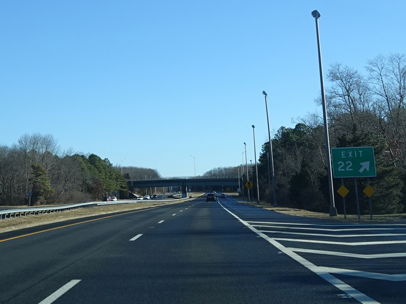 Exit 21 is for Commodore Boulevard (CR 526) and Cedar Swamp Road (CR 527).