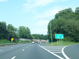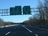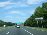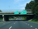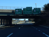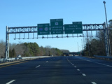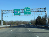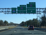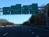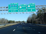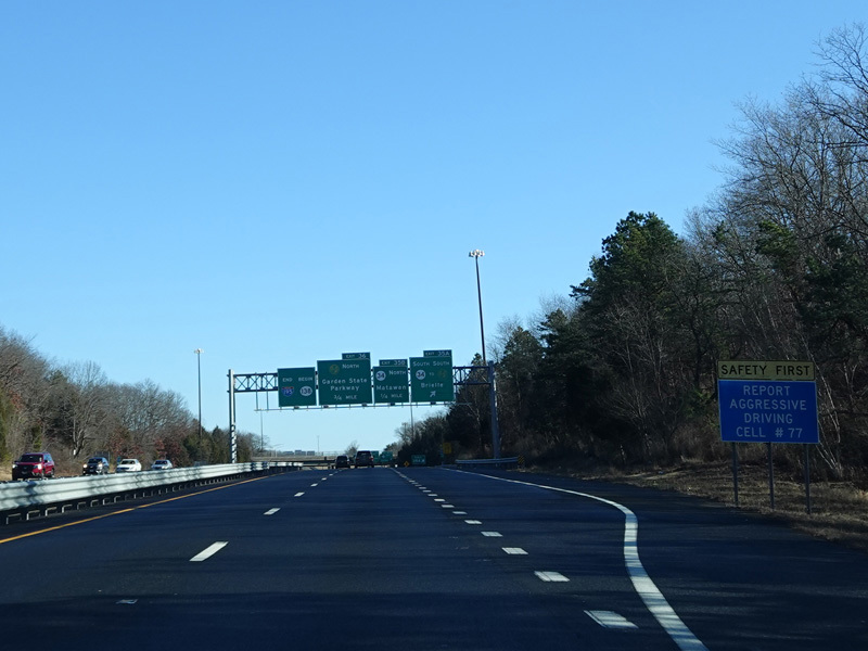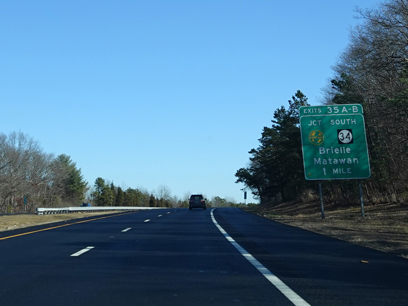 Exits 35A-B are for NJ 34 and the Garden State Parkway (NJ 444) south. Exit 36 is for the Garden State Parkway (NJ 444) north. I-195 ends here, changing designation to become NJ 138 straight ahead.
