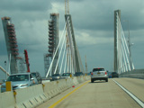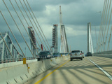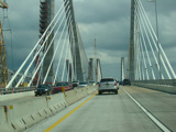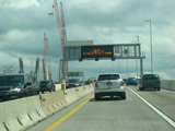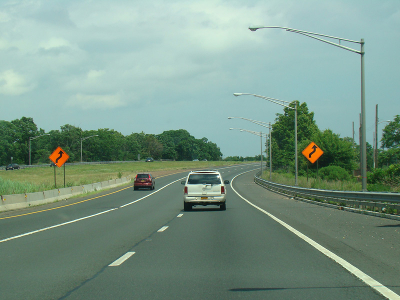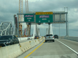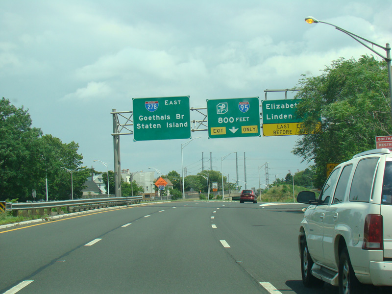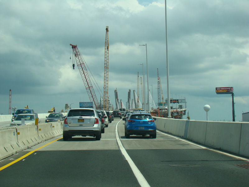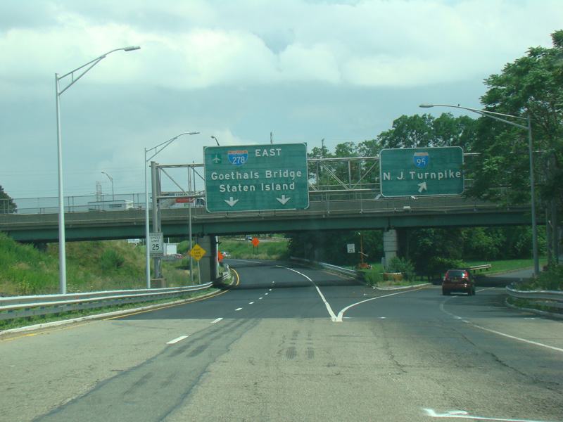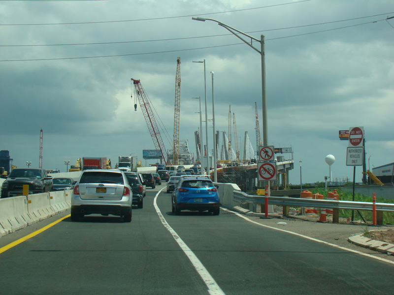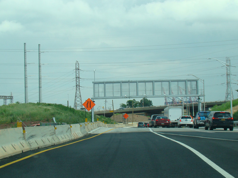 These pictures show the approach to the Goethals Bridge at appeared while the bridge replacement was in progress. The temporary orange signs have all been removed, and some of the overhead signs have been replaced.