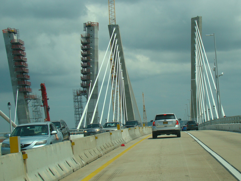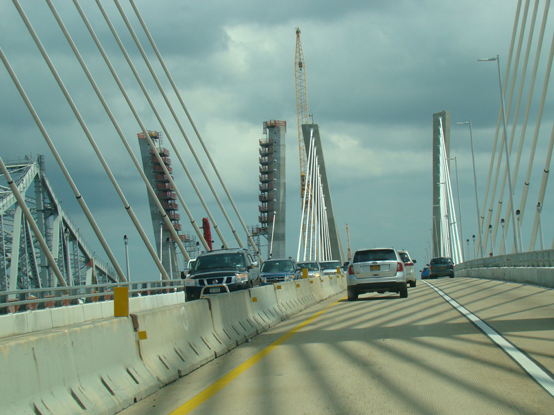 These pictures were taken during the construction to replace the Goethals Bridge. At the time, traffic in both directions was routed over what is now the eastbound span while the westbound span was being built.