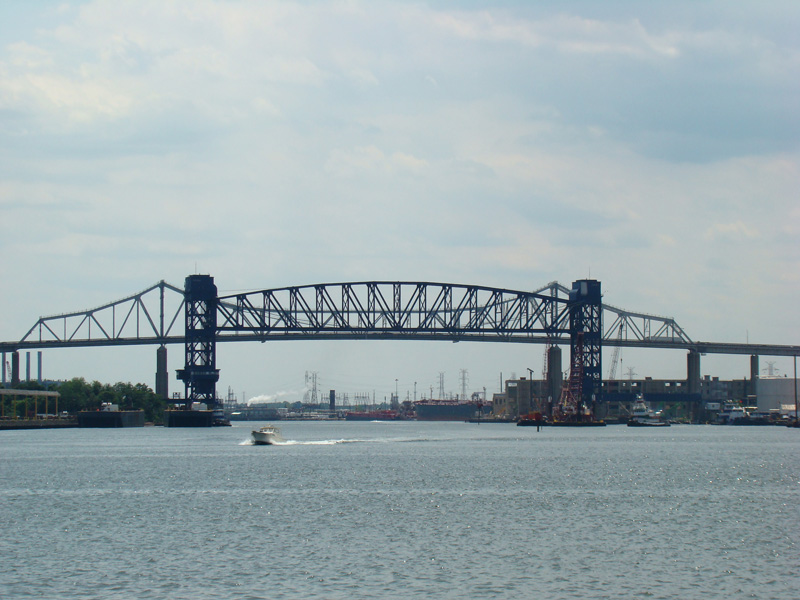 This picture shows the original Goethals Bridge as observed from Elizabeth. It was taken before construction work began to replace the bridge.