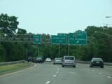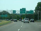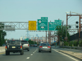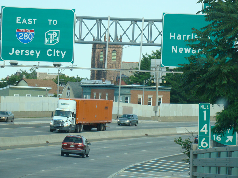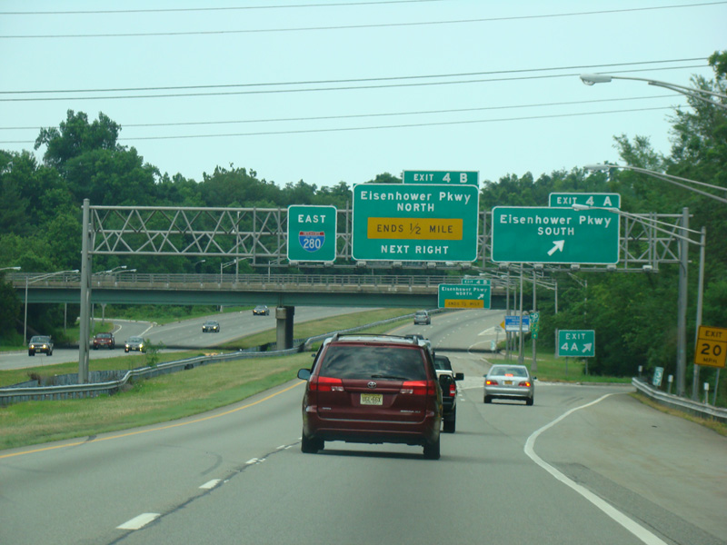 These pictures show I-280 eastbound as it appeared in 2014. The mile markers have all been replaced with new ones that include the route number. Some of the exit signs have been replaced, while other still stand.