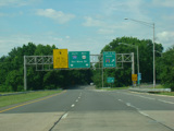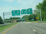 Exit 2C is for US 130. Exit 2B is for Wiley Road (US 40) east and the New Jersey Turnpike (NJ 700). These exits actually lead directly to Hawks Bridge Road (NJ 140), which is not signed here but provides access to the other routes that are signed.