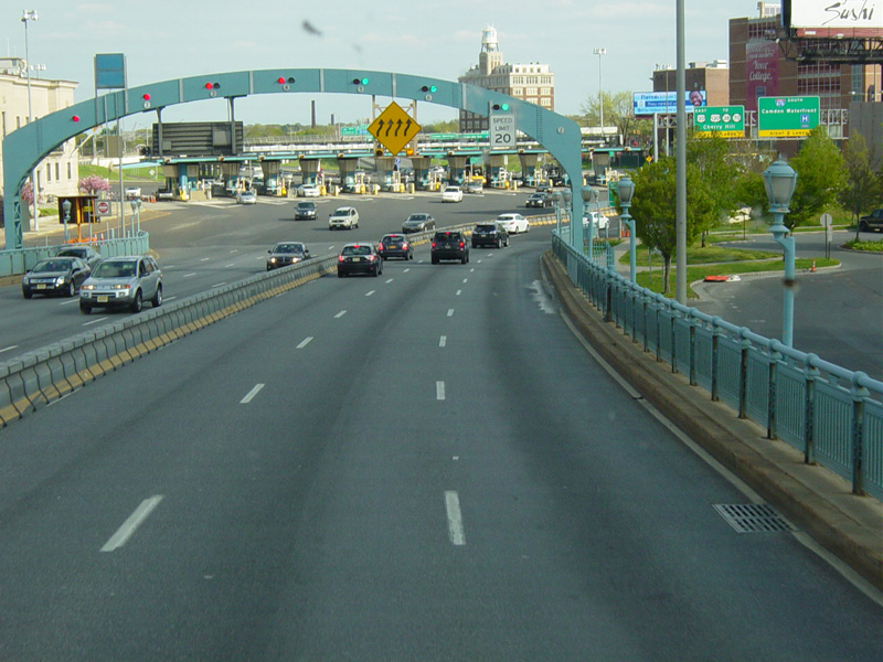 Welcome to New Jersey! There is a tollbooth for the Ben Franklin Bridge, but there is no toll in this direction.