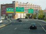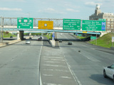 There is an unnumbered exit for Sixth Street and Broadway. Then, the highway splits. Bear right for I-676 or left for US 30.