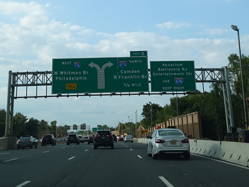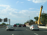 These old button-copy signs used to mark exit 2. They have been replaced. The noise barrier that had been under construction at the time has been completed.