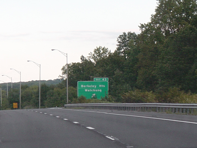 Exit 43 is for Berkeley Heights and Watchung. It leads to Valley Road (CR 527), but only the town names are posted.