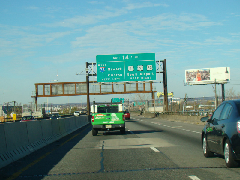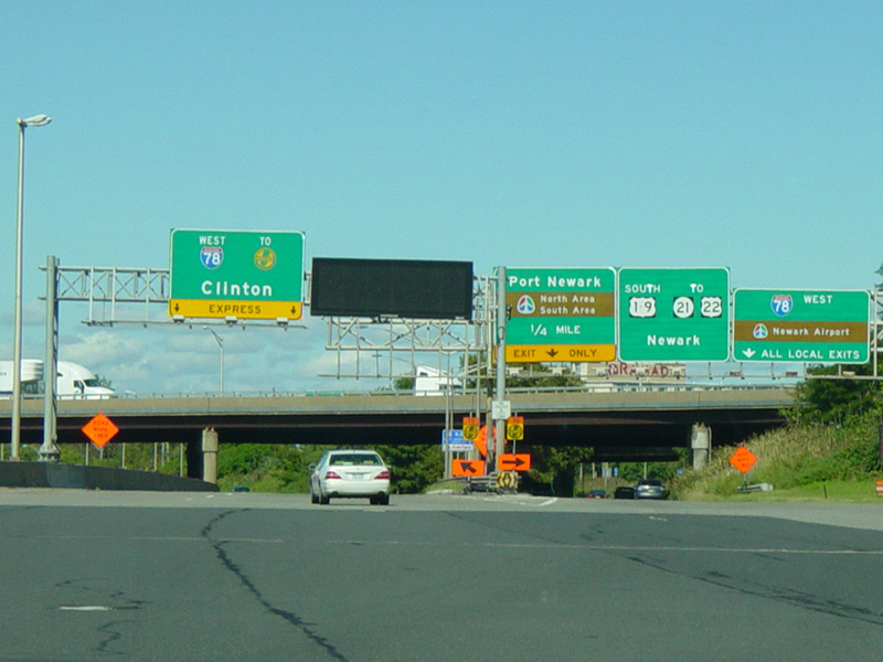These signs used to mark the end of the Newark Bay Extension of the New Jersey Turnpike at the turnpike's mainline. They have all been replaced.
