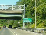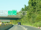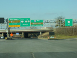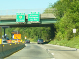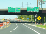 These pictures show the local lanes of I-78 as they appeared while construction work was in progress. At the time, they were narrowed down to two lanes in areas where there are normally three. The signs for exit 56 have since been replaced with new ones indicating that it is a left exit.