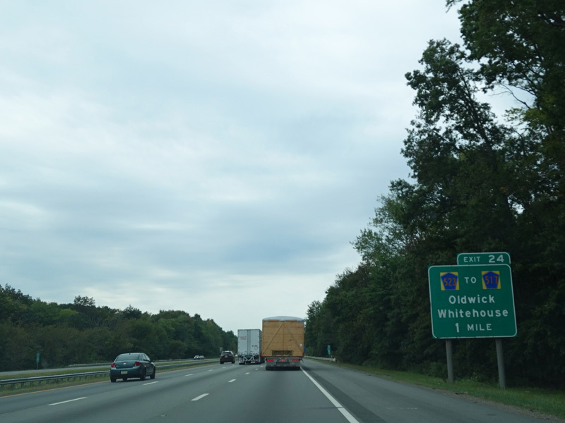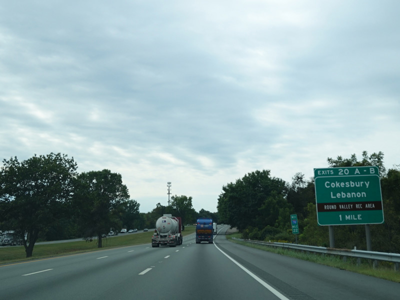 Exit 20B is for Cokesbury. Exit 20A is for Lebanon and the Round Valley Recreation Area. The exits lead to Cokesbury Road (CR 639), but only the town names are posted.