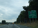 West of exit 29, there is a short section with only two westbound lanes. Additional lanes merge in from both sides and then end, bringing the expressway back to three westbound lanes.