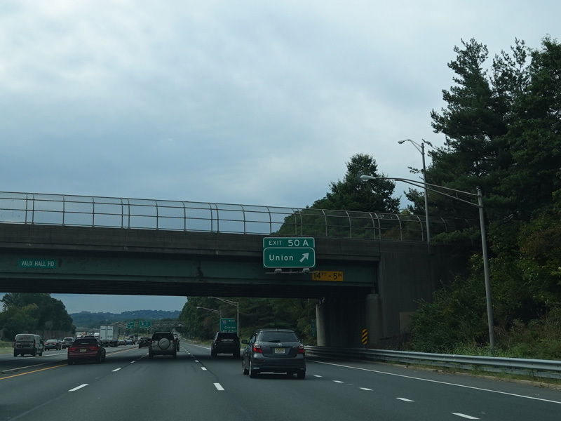Exit 50B is for Millburn and Maplewood. Exit 50A is for Union. The exits lead to Vauxhall Road (CR 630), but only the town names are posted.