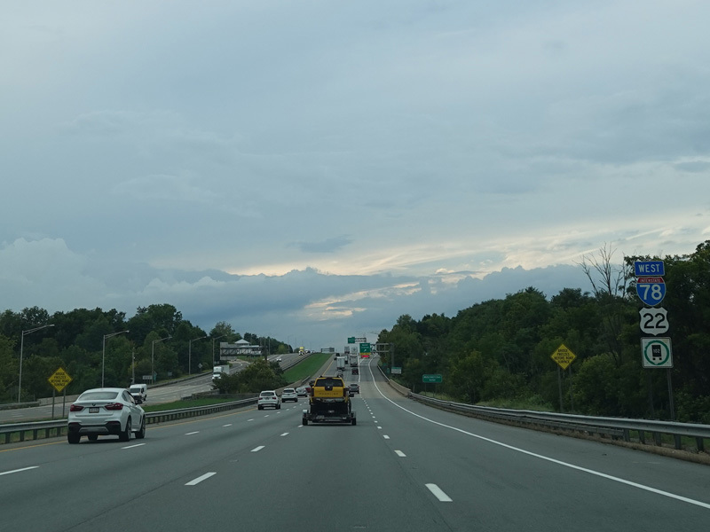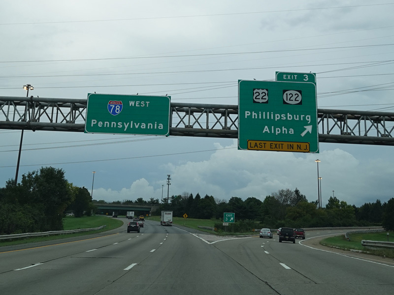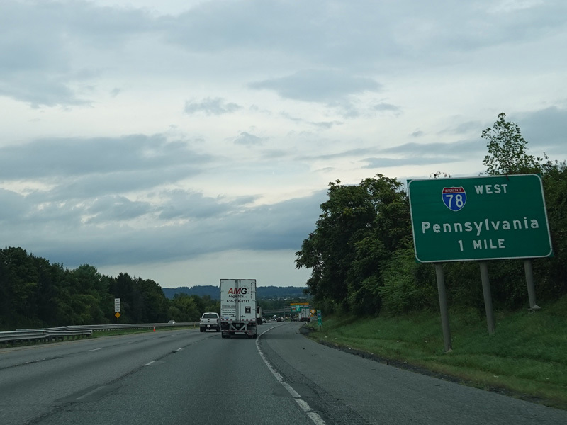 There are no exits along the last couple of miles in New Jersey. I-78 crosses the Delaware River to Pennsylvania straight ahead.