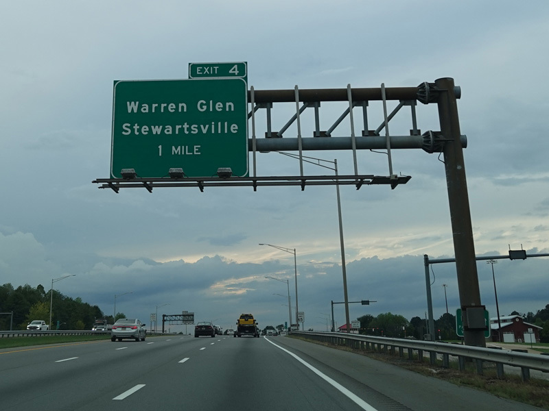 Exit 4 is for Warren Glen and Stewartsville. The exit leads to South Main Street (CR 637), but only the town names are posted.