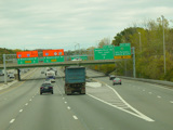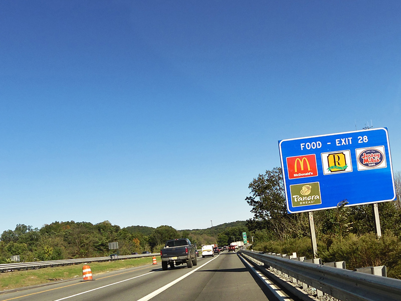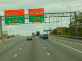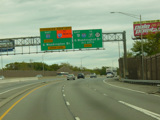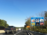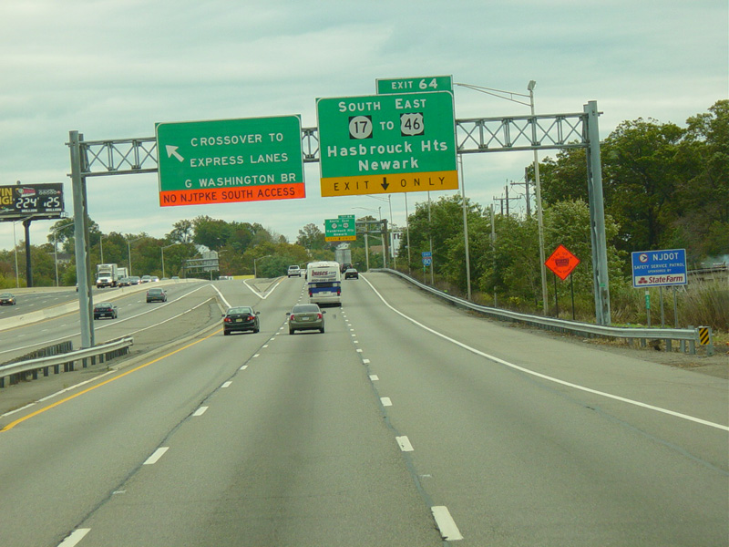 These pictures show temporary orange signage from when the ramp from the express lanes to the southbound side of the New Jersey Turnpike (I-95) was closed due to construction.