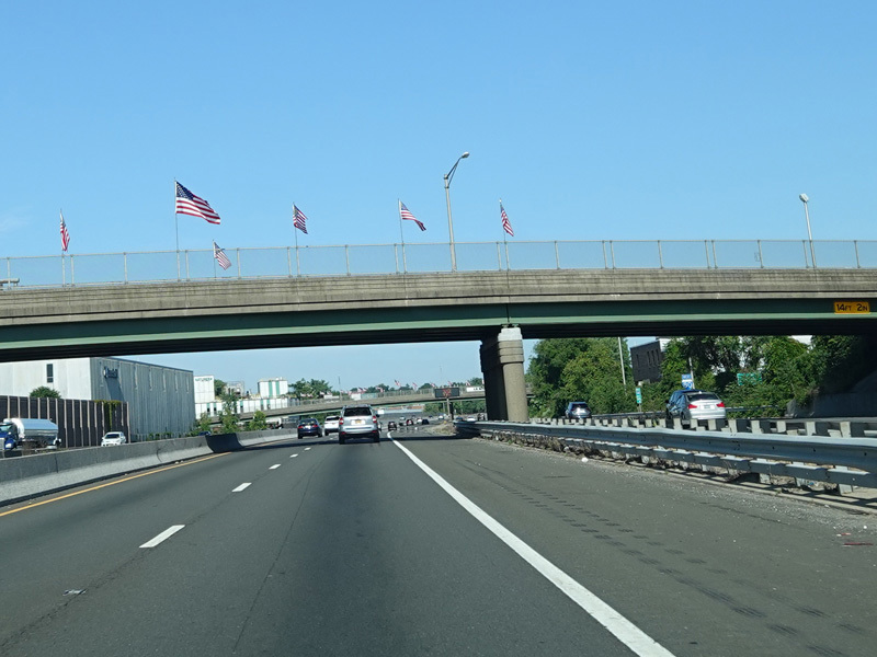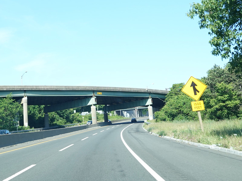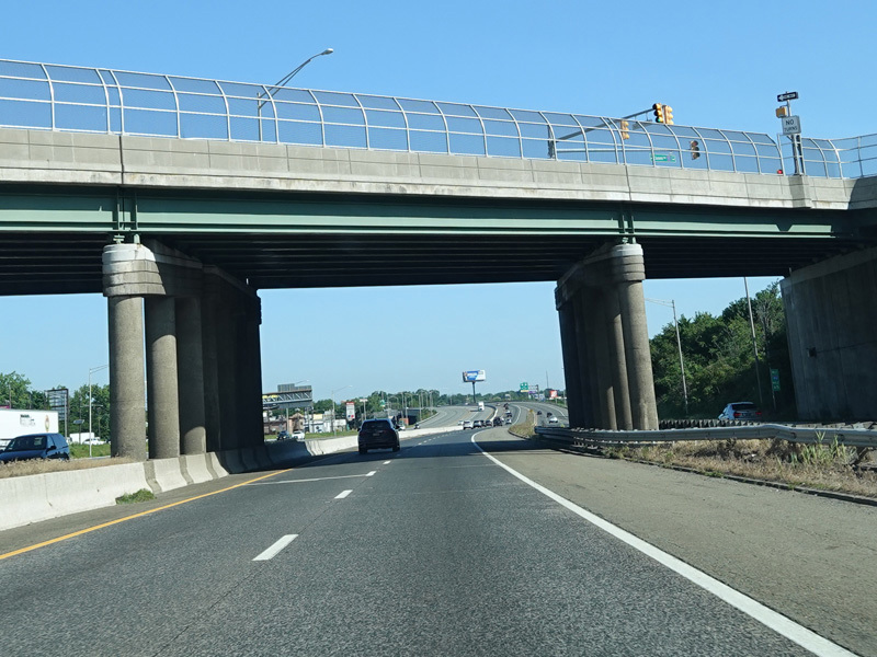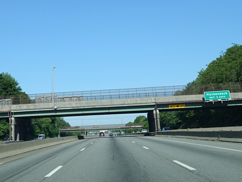 A ramp merges in on the right from the northbound side of the New Jersey Turnpike (I-95).