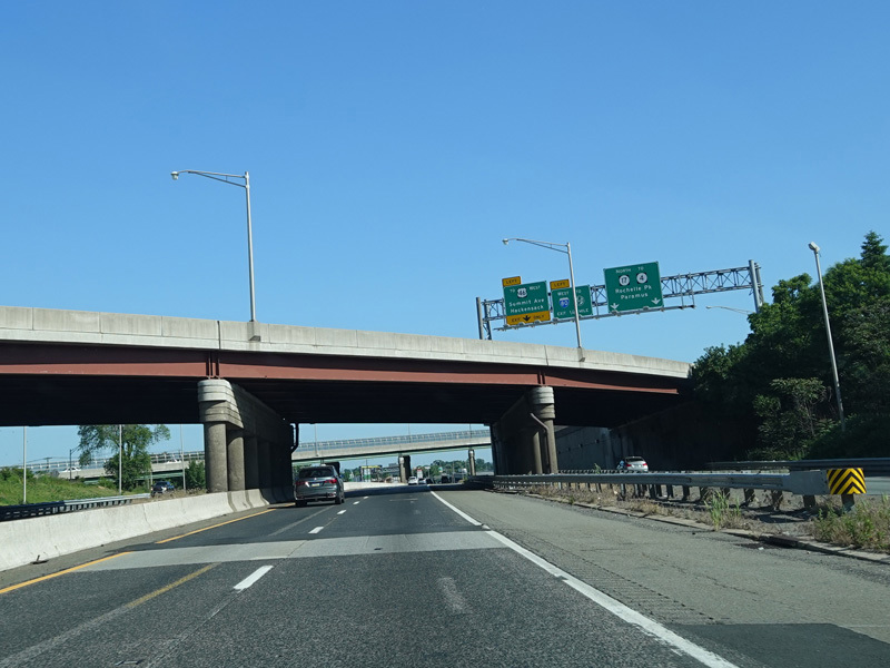 The express lanes end here, merging together with the local lanes just before exit 63, which is for NJ 17 and NJ 4.