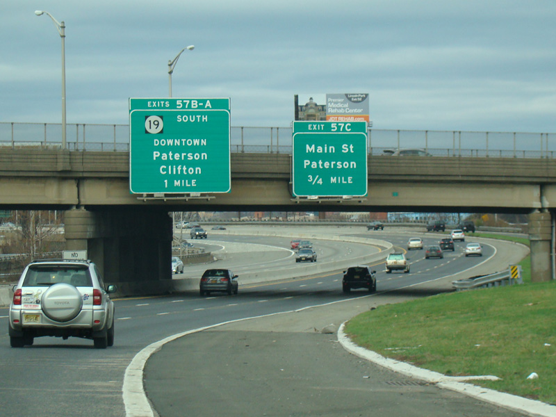 Exit 57C is for Main Street (CR 601). Exits 57B is for Downtown Paterson. Exit 57A is for NJ 19.