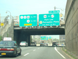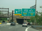 Welcome to New Jersey! I-95 is known as the New Jersey Turnpike beginning here. The exits at its northern end are a continuation of the exit numbering scheme for the Bergen-Passaic Expressway (I-80), which begins a short distance ahead. The exits available to motorists coming off the lower level of the bridge are slightly different from those available at motorists coming off the upper level. Exits 73-74 are for Fletcher Avenue (US 9W), Lemoine Avenue (NJ 67), and the Palisades Parkway (NJ 445). Exit 72B is for US 1/US 9/US 46. Exit 72A is for NJ 4.