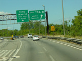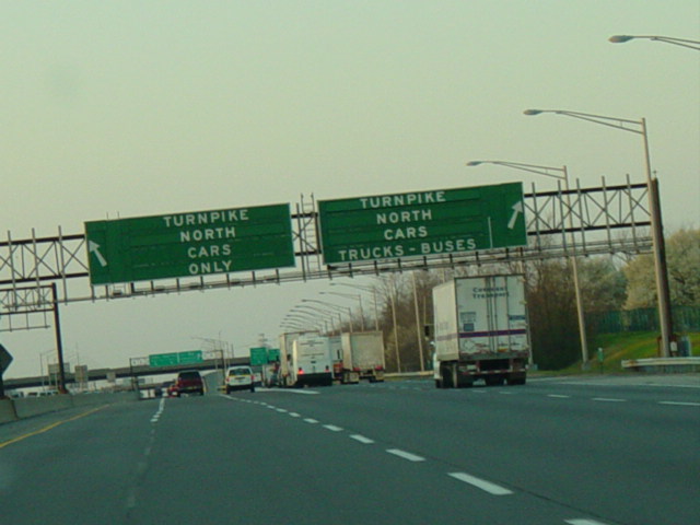 These pictures show the turnpike northbound prior to the extension of the car/truck lanes south to exit 6. All signs shown in the pictures have been replaced.