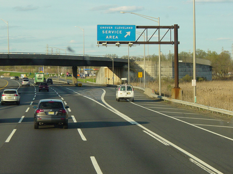 This sign used to mark the Grover Cleveland Service Area before it was damaged by Hurricane Sandy.