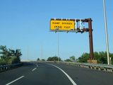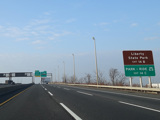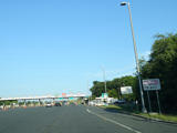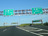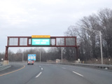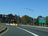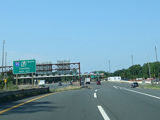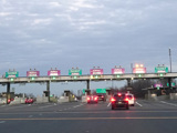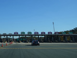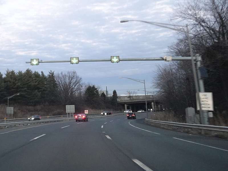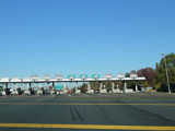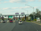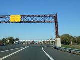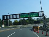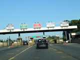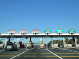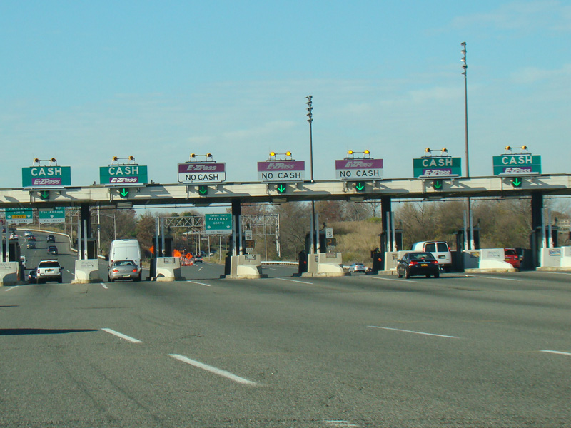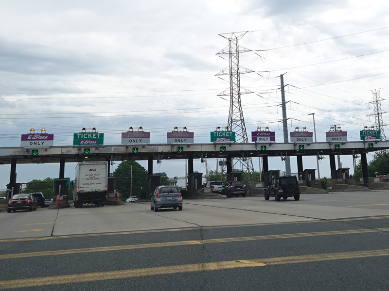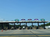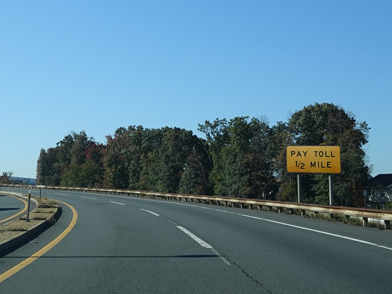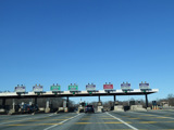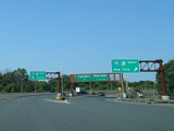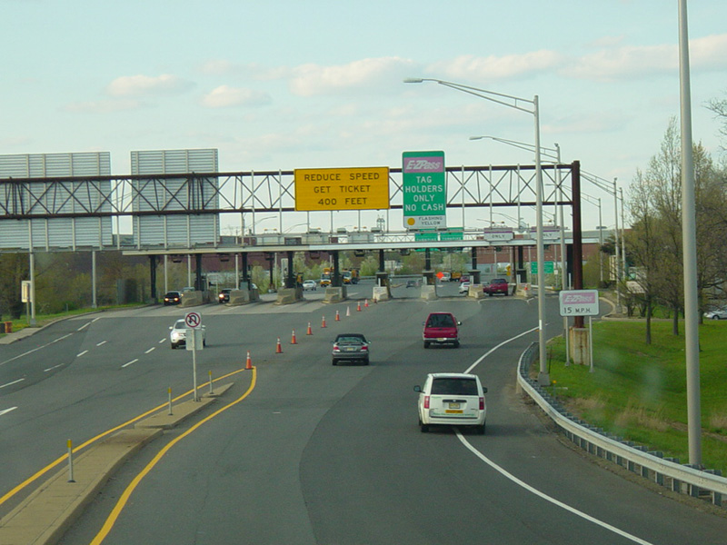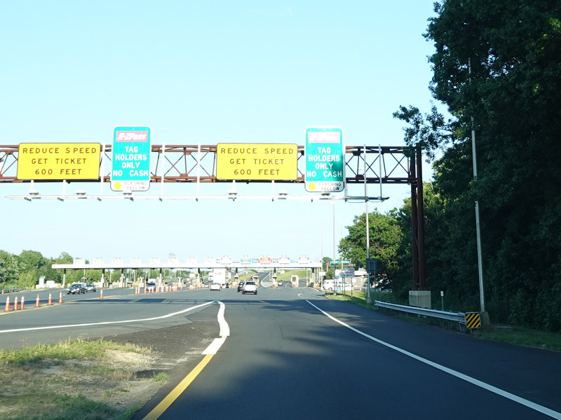 Motorists entering the turnpike at exit 7A pass through this tollbooth. Those who do not have E-ZPass must take a ticket indicating where they got on the turnpike. After the toll, the ramp splits. Bear left to go north or right to go south.