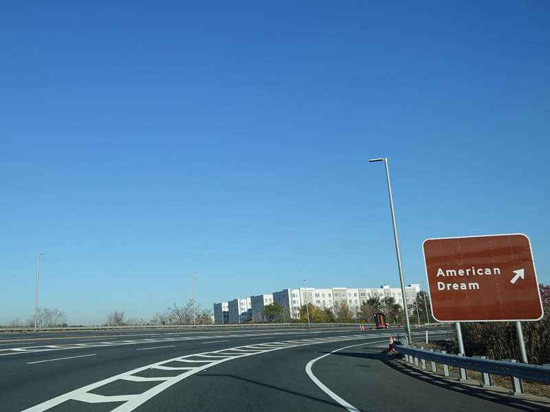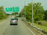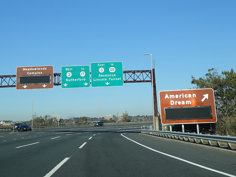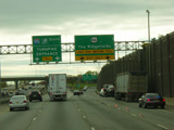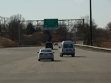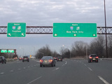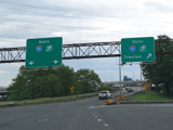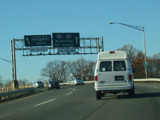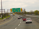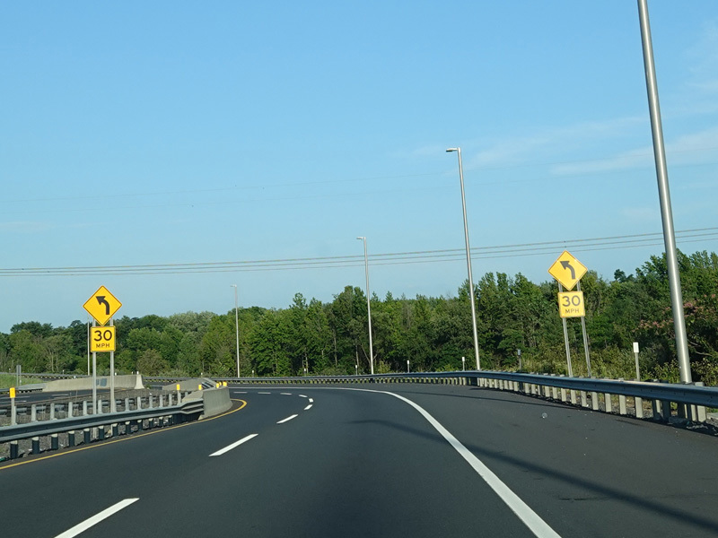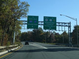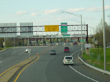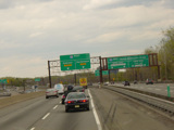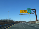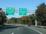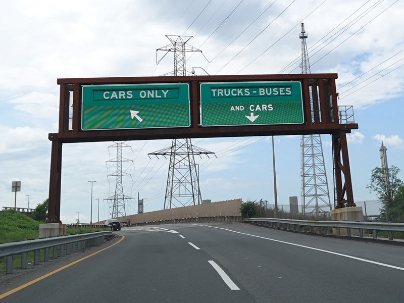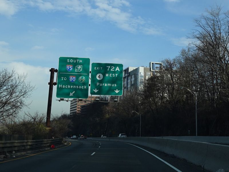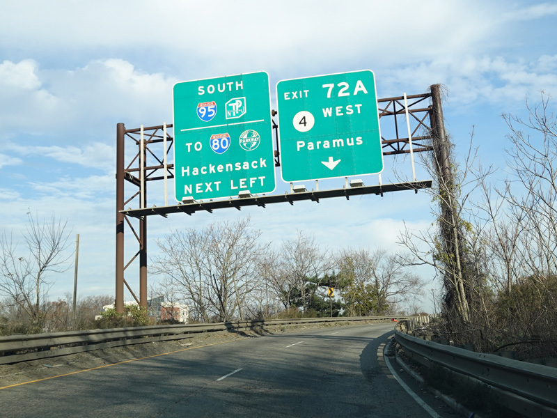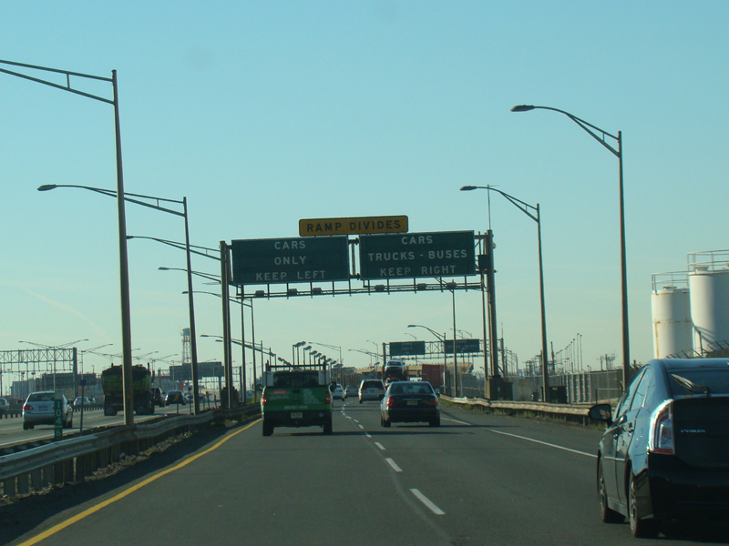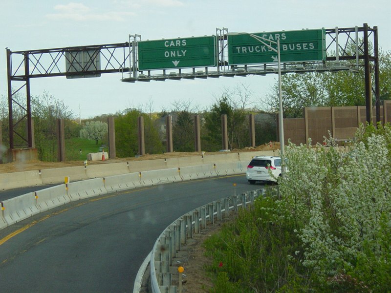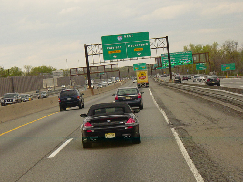 A long ramp extends from the northbound New Jersey Turnpike to the beginning of the Bergen-Passaic Expressway (I-80). At the end, the ramp splits. Bear left for the express lanes or right for the local lanes.