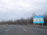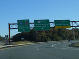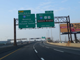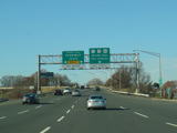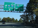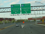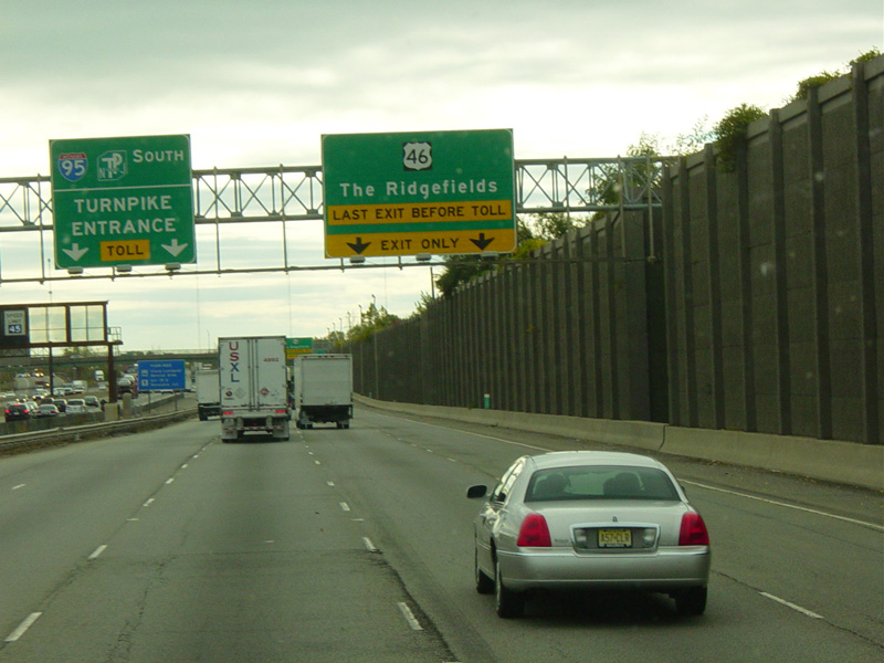 The ramp for exit 68 merges with the ramp from the Bergen-Passaic Expressway (I-80) and then splits. Bear left for the turnpike south or right for US 46.