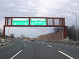 Motorists entering the turnpike at exit 13 pass through this tollbooth. Those who do not have E-ZPass must take a ticket indicating where they got on the turnpike. After the toll, the ramp splits. Bear left to go north or bear right to go south.