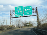 Bearing right for the local lanes where the turnpike splits when travelling south leads to this ramp. There is an entrance to the local lanes of the turnpike on the left. Continue straight ahead using either lane for exit 72A, which is for NJ 4 west.